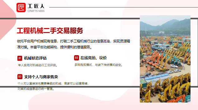 在建设工程中,机械设备的合理配置与高效使用直接关系到工程进度与成本。工匠人APP的“找机械”功能通过智能匹配算法,将各区域的挖掘机、装卸机、起重机等工程车辆与需求方自动对接。