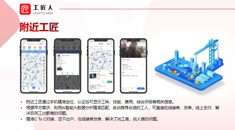建设行业长期存在着“工人找活难、企业找人难”的矛盾。工匠人APP的“找工人”板块打破了这一僵局。