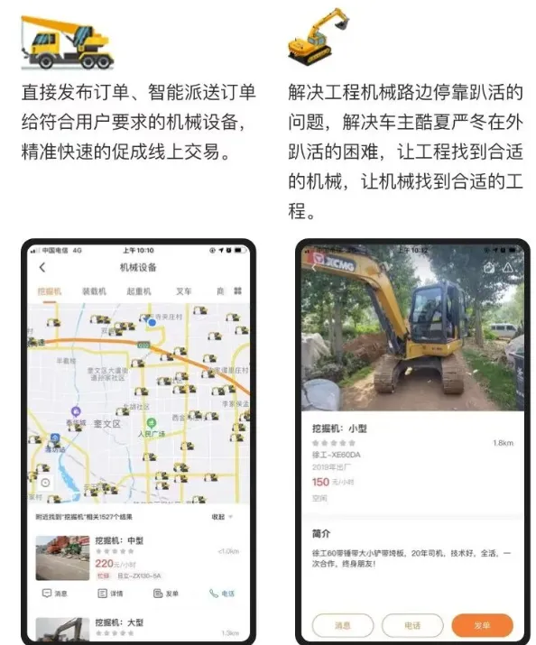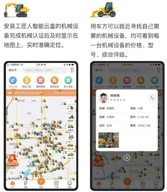 工匠人APP将机械方与需求方进行精准匹配。