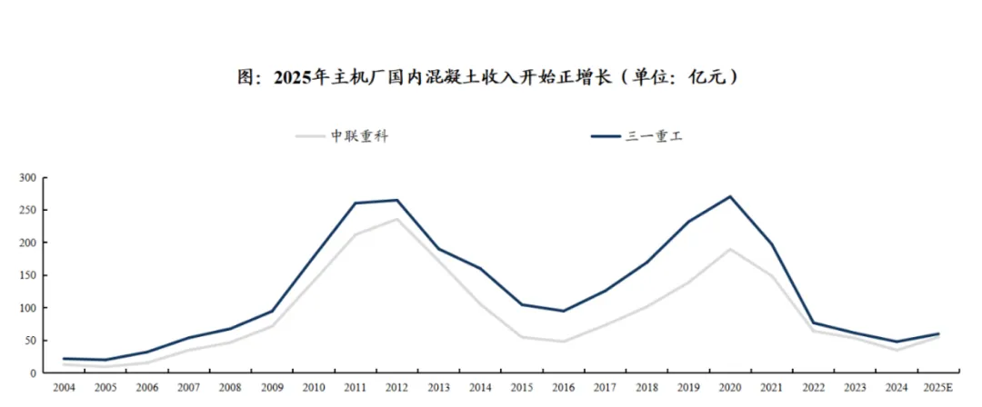 混凝土机械:2025年国内主机厂在混凝土板块开始呈现正增长,其转正时间点与增长幅度均优于起重机。具体来看,混凝土机械部分企业从一季度起已实现增长,而起重机则延迟至二、三季度才逐步显现回暖。这一超预期的表现,主要得益于电动混凝土搅拌车渗透率的快速提升,技术迭代所带来的设备更新需求持续释放。