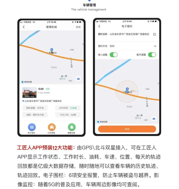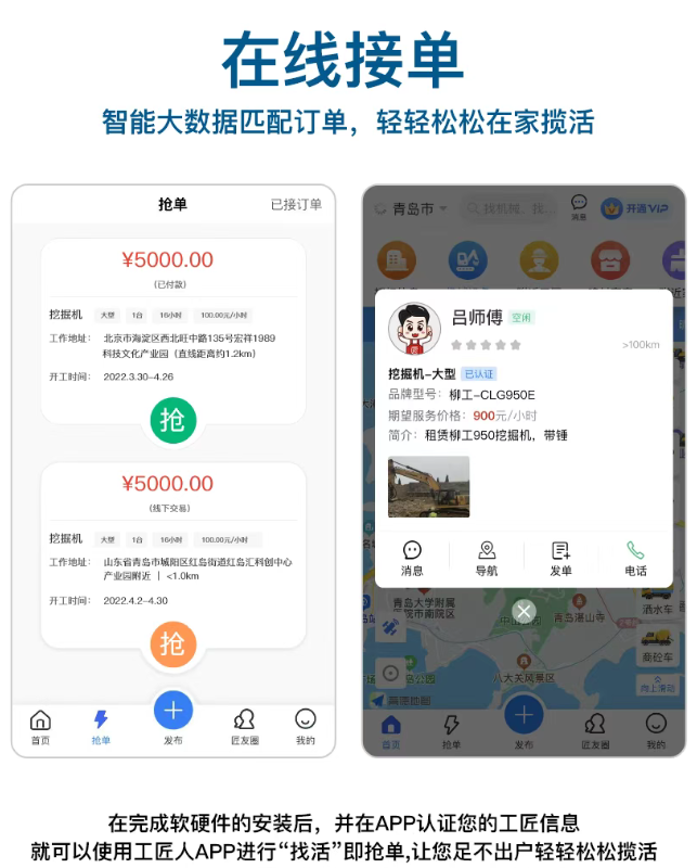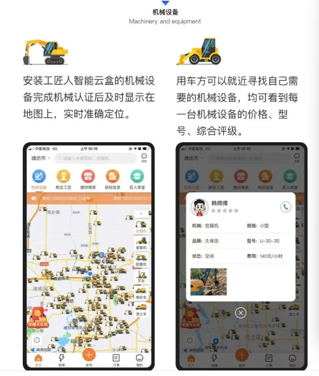 安装工匠人智能云盒的工程机械将展示在工匠人平台地图上,为车主创造更多商业机会。